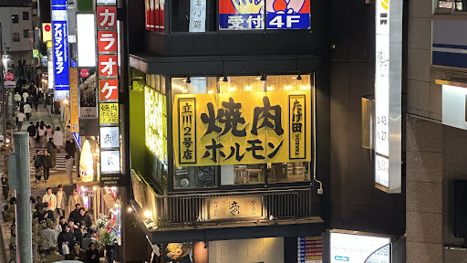 Read more買い物帰りに利用した焼肉屋さんです。 立川駅からは歩いてすぐのところにある空中階のお店で、壁面の看板がかなり目立ちます。
