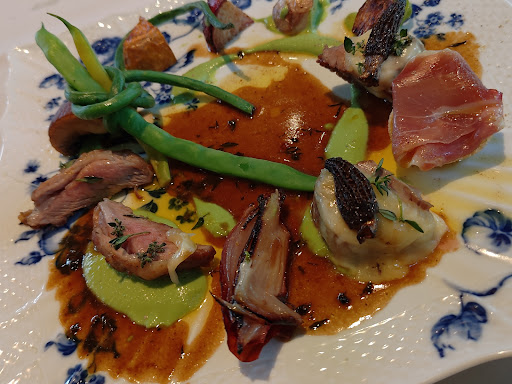Foie gras, crab soup & delicate French desserts in a restored train carriage turned dining room.