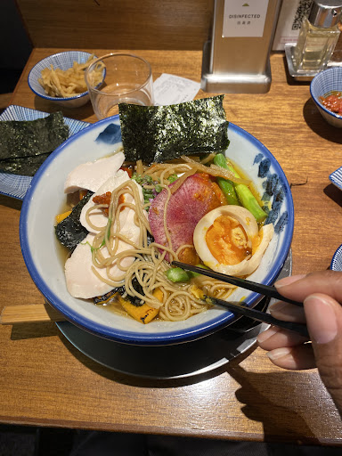 Read moreSooo glad this place exists!! I don’t eat pork, so I was relieved to find a ramen restaurant that has a vegetable broth option. I ordered the Rainbow Vegan ramen and later added the tender chicken breast along with the marinated egg, seaweed, greens and spicy sauce and oh my goodness it was soo delicious and full of flavor. The vegan ramen comes with at least 3 different kinds of vegetables. It was not salty and I felt satisfied. You place your order and pay at the kiosk first. There is an English language option along with pictures. You will be given a ticket with your order number and the kind host will direct you to your seat and take your ticket. It’s bar seating, you get to have a cool view of the cooks preparing the ramen.