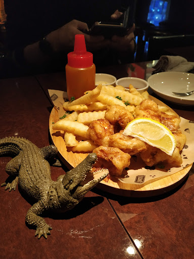Really nice classy bar with good food and drinks. Prices were a little bit on the high side for me, especially the drinks, but nothing too bad 😉 The bartender was really willing to adjust the cocktails to your preferences (he overheard me saying that I was doubting between the strawberry cocktail that I got and a ginger ale, so he said he "didn't make it too sweet for me because he heard I liked ginger ale too"). Wani&chips (fish and chips but then with crocodile 🐊🍟meat) was good. More dry than I expected, but I guess that's what crocodile meat is like maybe. I think next time I'll stick with something more juicy, but it was a good experience to be able to try something new like crocodile meat 😜 They had music videos of Western top 100 songs playing, making for a good atmosphere...