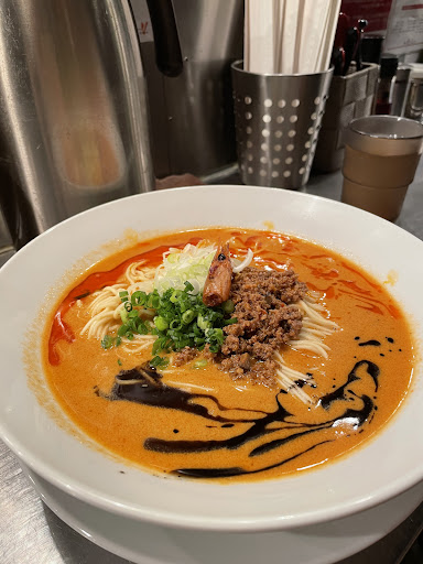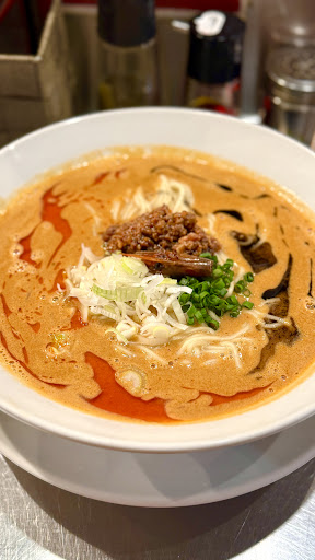Best ebi (shrimp) tantanmen I have ever had in Japan. The soup is thick, rich with full ebi flavor. They suggest to taste the soup with different toping sauce first before mixing them all together, and then add some konbu vinegar later to soften the taste. The noodles come with a bowl of cheese-topping rice which you can eat together with the leftover soup as risotto style. One minor point is since it is ramen shop, there is only counter seat and quite also...