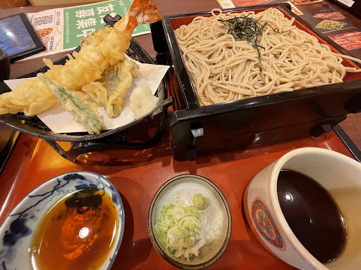蕎麦は乾麺ですかね…コシは有りますが、香りはイマイチ。 天ぷらは美味しく揚がっててなかなか良い。 天つゆと蕎麦つけ汁が別なのはとても良い。