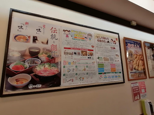 サガミグループのうどんチェーン店。 うどんのつゆは関西風の澄んだ黄金つゆ。
