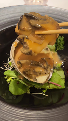 ◆蝦夷鮑と鮑茸のスチーム 紹興酒バターソース →大ぶりで、とても1口、2口では口に収まらないほどの立派な鮑! 柔らかさと弾力、貝らしいふっくら感が絶妙です。 バター入りの紹興酒ソースがとっても美味しくて 洋風の要素もありました。 そんなソースは余らせるにはもったいなくて、お野菜のドレッシングとしていただきました!