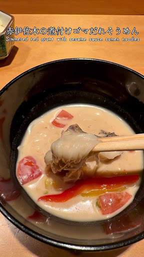 Squid from Hyogo The squid was finely sliced and beautifully translucent— it’s hard to capture in photos or videos, but it was so tender and flavorful. A splash of sudachi citrus added a refreshing touch, and the sprinkle of salt on top brought everything together. So good!