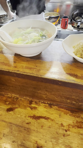 Read more東陽町の駅から江東区役所に向かう 途中の裏通りにあります。 周辺の飲食も沢山あって ランチの激戦区といった様子。 年季の入った店構えから長く続けてらっしゃるのかと想像されます。 ラーメンは醤油、塩、味噌をベースに 辛口、野菜などのバリエーションあり 私は野菜ラーメン塩(大盛)に半チャーハンのセットで注文 お店の名前の通りすべてのラーメンに 追加200円で半チャーハンが付けられます。 先ずはラーメンから タンメンのようなものを想定していましたが、やや違いますね 白菜ともやしをメインに湯がいた野菜を 塩ラーメンにトッピングする形です。 スープはどこかで食べたことのある味… 味覇の青ですね ですので美味しいです笑 (違ってたらごめんなさい) 麺は老舗町中華らしく柔らかめですが 浅草開花楼のようです。 チャーハンもラーメンとほぼ同時に出してもらえます。 濃いめの味つけのしっとりタイプ チャーシューもしっかり入ってます。 麺大盛に野菜トッピング、さらに半チャーハン追加でなんとジャスト1000円! 今どきこの価格で食べられるお店ないです。 通りがかりで出会ったお店ですが 近くにあったらお昼の普段使いに 大...