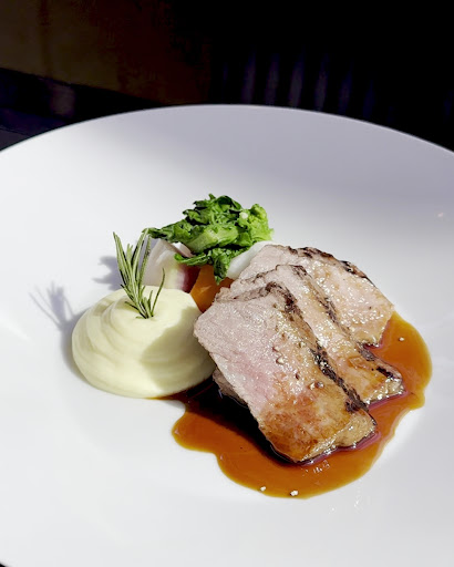 白花椰菜熬煮的季節濃湯,味道有點寡淡,沒有放太多獨特的香料進行調味。結果沒想到前菜的鱈魚冷菜,也用白花椰菜泥襯底,我只能祈禱主菜不要再讓我看到白花椰菜泥。前菜很平凡,只有擺盤很好看,但算不上精緻,鱈魚的處理方式沒有太特別,出乎意料,五星級飯店餐廳的餐點也可以如此「平易近人」?!