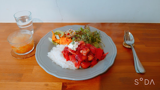 🔸️打拋肉餐盤(ガパオライス ワンプレートごはん)¥1100 一送上來狂冒煙,吃起來真的滿不打拋豬的XD碎碎肉的肉醬拌入少許紅蘿蔔,有很香的胡椒香料味,跟半熟蛋配起來超好。