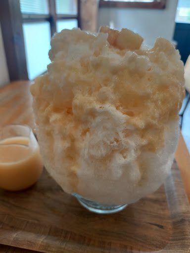 Read more抹茶ミルク850円 期間限定:桃ミルク1100円 をオーダー。 夏季はフードメニューはお休みして、かき氷のみの提供になるみたい。 かき氷の価格は800〜1100円と他店に比べると若干安めの設定。 注文後、先に会計を済ませる前払い制。 現在、入店制限しており、1テーブル1席制にしていて、ふたりで来店しても別々のテーブルに通される。 なるべく近い席になるように配慮して下さるが、一緒の席で喋りながら食べたいとか、長時間居座るような人は避けた方が良いと思う。 私は逆にこのシステムがすごく良かった。 店内が静かで、味に集中できた。