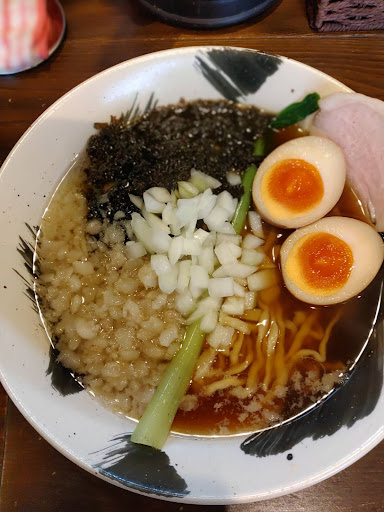 ãå§ãã¯ç ®å¹²ãå³åãã°ãç ®å¹²ããšå³åãæ¡é ããèåããã¹ãŒãã¯ã¯ã»ã«ãªãçŸå³ãããã€ãããªããã¡ãªèèãçããã®ã¿ããåããäžåããŠããŠãã·ã£ãã·ã£ããã飿ãè¯ãã¢ã¯ã»ã³ãã«ãè±è ãæ·»ããããŠããŠé©ãããã©ãèããŠã¿ãã°ç ®å¹²ãã§ãšã£ãåºæ±ã«è±è ãå ¥ããå³åæ±ã¯å®¶åºæçã®å®çªãªã®ã ããåããªãããããªããå³åã©ãŒã¡ã³å¥œãã®äººã¯äžåºŠã詊ããããã¡ãªã¿ã«ç ®å¹²ãå³åã¯å€ªéººãªã³ãªãŒã ãã现麺ãéžã¹ãããã«ããŠããããèšãããšã¯ãªããå³åã«ã¯å€ªéººãåãã®ã¯åãããã©ã现麺奜ããªã®ã§ãªããšããé¡ããããããããšãããã³ã°ã¡ãã¥ãŒã«ã³ãŒã³ãå ¥ããŠããããšå¬ãããåæµ·éã©ãŒã¡ã³ãããªããšå±ããããã ãå³åã«ã¯ãã£ã±ãã³ãŒã³ãããããæŽŸãªã®ã§ã