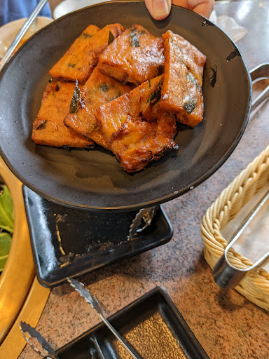 An average Yakiniku chain restaurant. The lunch menu has a number of BBQ choice of around 1000 Yen for even a 250g of meat, and the lunch menu is available until 5pm!! Most lunch courses come with free drink bar and dessert. This place has more than 10 parking lots but are often full...