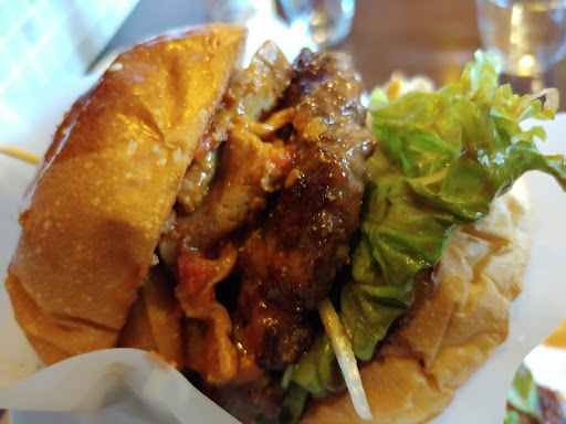 Art-lined Italian restaurant with wine, burgers & a menu highlighting meat dishes like steak.