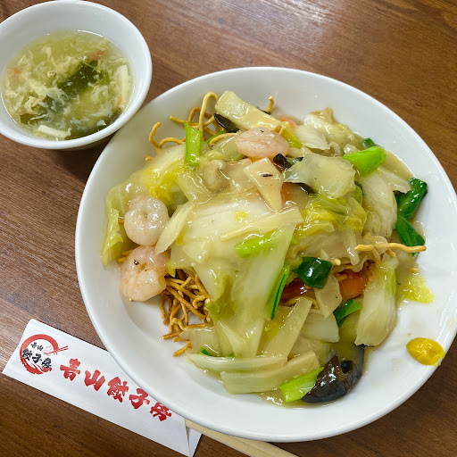 今回初めて海鮮あんかけ揚げ焼きそば頼んでみましたが、麺が美味しくない…少ししか入っていない海鮮と、白菜は新鮮そうで味も問題なく、あんかけは味が薄くて食べられなくはないものの麺の湿気ってるプレッツェルのようなボリボリ感となんだか輸入品のような風味が好みではなかった。