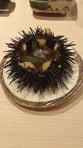 Amazing dinner with the most energetic crew I have ever met. Shouting at the TOP of their lungs to welcome and to bid their customers farewell, it makes you feel so Energized to be sitting at the table which was reserved for you. Nakamura san explains each dish the best he can and makes each one with such passion. He is always looking around at the expressions of each customer to see if they are enjoying the meal and to thank you and ask how it was when you make eye contact with him. He has a warm bubbly personality and he is Super friendly as well. Food breakdown Clam soup with water shield Nice and sweet broth with delicious jelly like crunch from the water shield. Chutoro Nice and fatty with just the right amount of Chew. Great for whetting your appetite for what’s to come. Grouper sashimi Delicious chewy texture with nice fatty ness. Paired with ponzu(citrus soy), spring onions and radish, it cuts through the fish very well giving it a nice mouthfeel. Steamed abalone Delicious chewy abalone that’s so juicy it bursts with every bite, releasing its sweet umami flavours each time you Chew. Great with a dab of salt. Aji - Horsemackeral My favourite Aji of all the restaurants. So fatty it almost has a crunch on the first bite, then it melts and spreads on your tongue, followed by the delicious sweetness of the meat and the kick of the spring onions to give it some relief from the richness. (MY FAVOURITE) Grilled fish I wish I knew the name! It was delicious with a crunchy skin and soft flesh. Perfectly salted, it made for a great snack. Monkfish liver with egg custard Velvety Ankimo on TOP of a smooth warm egg custard, it goes so well together. The sweetness of the liver and the saltiness of the egg come together in a great harmony. Crab Velvety and almost custard like. The crab was very sweet and delicious and it paired so well with the Shari to give you a perfect bite. Akauni with kobujime amaebi Sweet plump sea urchin plopped on TOP of Kombu marinated amaebi Sardine rolls Iwashi cucumber and sweet marinated Kombu come together in this beautiful roll. The fattiness pairs well with the refreshing crunch of the cucumber and sweetness of the seaweed inside. Mantis shrimp - Shako First time I had mantis shrimp that tasted juicy and sweet with great flavour. Amazing! Grilled river eel - Unagi Super crispy exterior with melt in your mouth fatty meat and a delicious Kobayaki sauce. Bonito - Katsuo This was not fantastic for me. It was nice but not amazing. Squid - IKA Delicious with an almost creamy sweetness. So delicious. With a squeeze of yuzu and some salt, amazing! Sillago - Kisu A fish we learned yesterday in class but tastes so much better. Nice and mild sweetness with a very clean finish. Yellow tail - Shima Aji Deliciously fatty with an amazing sweetness in the mouth. Marinated red part of tuna - Akami zuke Nice umami flavour from the zuke and very smooth. Not amazing though Fattiest tuna - Otoro Melt in your mouth the moment you bite into it. Delicious fat just coats our tongue, pairing so well with the Shari. Gizzard Shad - Kohada Delicious fatty flavour with nice hint of vinegar from the vinegar cure. Bafun Uni from Hokkaido So sweet and delicious, with the crisp seaweed and Shari, match made in heaven. Surf Clam - Hokkigai Sweet and juicy with a great bite. So much yummier than what I made before. Miso soup It was a clear miso soup which was so light and refreshing with flavour of the sea. There must have been some clam juice added to it! Nicest miso soup I ever had. Sea eel - Anago This is a tough one. Anago is usually soft from the simmering and chock full of flavour, and I always hoped you could add some crispyness and char to it, and They actually did it here at Umi. So crispy with a slight char, nice and fatty meat coupled with a delicious eel sauce. Tamagoyaki Custard like without being too sweet with great flavour...