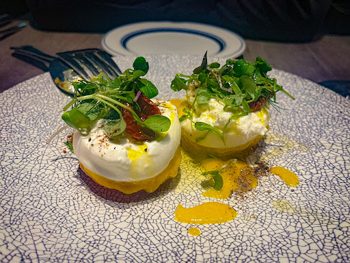 では、食事開始。 アミューズは、フレッシュチーズのハニーがけ。