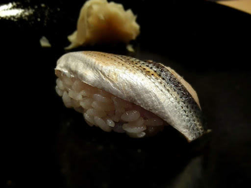 〆鯖 これが、惚れ惚れするような色つやで、印象に残る握りでした。