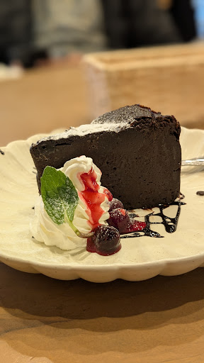 Chocolate cake- quite dark chocolatey and not repulsive on sweetness. good to go with super hot latte.