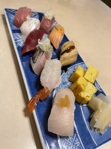 初めにいただいたのは、旬の魚を使った刺身盛り合わせ。新鮮な魚の美味しさが際立っており、特にマグロとサーモンは絶品でした。続いて握り寿司をいただきましたが、ネタの大きさとシャリのバランスが絶妙で、一口ごとに幸せを感じました。特にウニとイクラの握りは、口の中でとろけるような食感と深い味わいが広がり、思わず感嘆の声が漏れました。