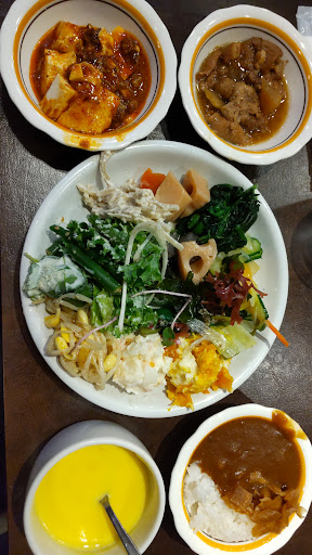 サラダバーについてはすべての野菜があるのではないかと言う程大げさに言いたくなる品揃え。覚えてるのだけ言うと、 かぼちゃサラダ、ポテトサラダ、もやしナムルっぽいやつ、蓮根などが入ったた煮物、マリネっぽいもの、粉チーズ掛かったサニーレタス、ごぼうサラダ、春雨サラダ、きゅうりの和物、ほうれん草の和物、その他にズラーっと並ぶ。サラダバー好きな人は是非一度行ってみて貰いたい。どれも美味しく、全種類なんて食べてられない位の品数!(勿論、単品野菜も含む) このまま変わらないで欲しいと願う。