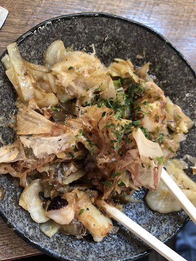 We walked up right before final call and after agreeing to a woman that we would both order drinks and entrees she sat us at a table (not mad about that at all, we have learned that when a place says it is closing at a certain time they are likely stopping service a bit earlier than that—our experience so far). Then we ordered and got drinks and they made a little omelet to get us started. So perfectly cooked. Then they made the noodles which were so good that we almost wanted another order. Then the woman that let us in came and made our monjayaki. Her name is Akari and she took the whole experience to the next level! She made sure we had everything we wanted and told us all about monjayaki! She was absolutely amazing!! We would go back just to visit her she was so nice and so fun to chat with. We didn’t totally know when or how to eat it and she coached us without a fuss. So kind of her. Then when we were leaving she even offered to spray us with deodorizer because of the grill smell. Not mad about that at all! The place was great. But Akari made...