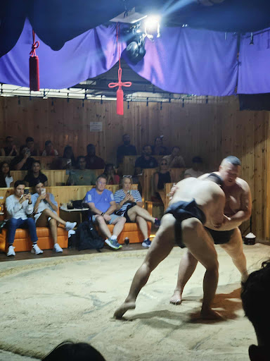 The food was delicious and all-you-can-eat, which was a treat in itself! Fun fact: sumo wrestlers eat between 6,000 to 10,000 calories per meal — and now we understand why! My husband even got the chance to step into the ring and try wrestling one of the fighters. He said it felt like trying to push a tree with roots in the ground — such a hilarious and memorable moment.