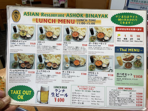 Read more(2021/07) ネパール系インド料理店。अशोक विनायकとは、KathmanduにあるGanesha(象の神様、なので看板にもいる)を祀る寺院。たぶんその近所のご出身なんでしょう。 インド料理は一通り。ネパール料理も、チョウミン、モモ、サデコ、チョイラ、セクワなどがある。どちらもお気軽に注文できるのがいい。近所の高校生・大学生がわいわい集まる場所でもある...