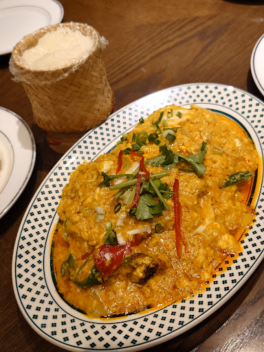 From Thailand, I chose the recently favored Poo Nim Pad Pong Ka Ree. It's an irresistible dish for crab lovers, featuring soft-shell crab, eggs, onions, bell peppers, and celery in a coconut curry. Paired with Khow Niew, bamboo-tube-packed sticky rice, it's truly exquisite!