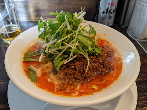Read moreThe best Szechuan style Dan Dan noodles I've ever had in Tokyo (and second best in all of Japan), served with plenty of meat. They're available with or without soup, and there's a choice of three soups. Also, you can choose spicyness level from 1-5. The soups are not that special, so I'd recommend to go without for the best flavor. Just mix it well, and enjoy. Oh, they offer paper aprons, and unless you want to lift the bowl up to your chin to eat, you'd be well advised to take it and wear it.