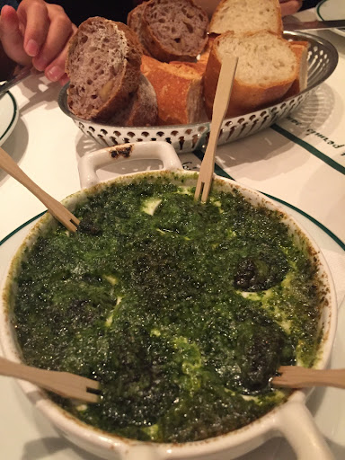 If you're looking for a proper meal, the steak frites is always good, or a sampling of many small dishes is great, too…just don't forget the French onion soup, which is spectacular and bubbling hot.