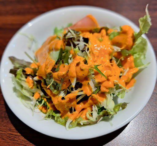 ☀️① サラダの ドレッシングが オレンジ色の ドレッシングで よく見かける色だけど 味は 初めての味で 美味しい