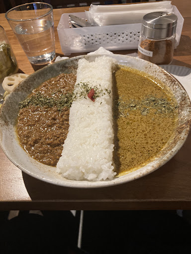 ▪️2種盛り薬膳カレー 普通盛り 1,400円 ・普通盛り カレー160g ライス200g ・S:スリランカ風薬膳スープカレー 辛さ★ ・C:豚挽肉と唐辛子の薬膳カレー 辛さ★★★