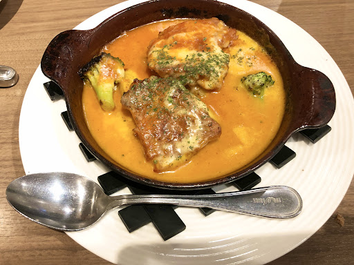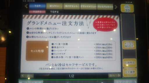 Read more評価の仕方が非常に難しい。 成人男性一人、パンの食べ放題なんて聞いたことも無いし無類のパン好きでもない。 ただホームページを見ると主菜があまりにもおいしそうなので入ってみる事に。 入口には主菜の食品サンプルが並んである、なんかホームページだと高そうなこじゃれたお店に感じたがこの食品サンプルはあまりにも安っぽく見えるので逆に無かった方がよかったのではないだろうか?写真とかでも良かったのではないだろうか? 店に入るとすぐにテーブルにセルフオーダー用のタブレットが並んでいるのが見えたので自分で勝手に着席するタイプの店かなと思い2,3歩進むも店員から声がかからずもう2.3歩進むと店員がいたので「一人なんですけど」と声をかけると「少々お待ちください」との事、他のお客さんの事をしていたらしい。 全然混んでないのに他の店員はいないので、しばらく待つことに、しばらくするともう一人出てきてテーブルを案内してるようなしてないような感じなので「どこでもいいの?」って聞くと「はいどこでもどうぞ」との事、その後注文の取り方等も教えてくれたがこの店員さんは間違いなく新人さんみたいでたどたどしい説明で新人さんならしょうがないかという所。 注文をしてまずトイレに行こうと他の店員にトイレの場所を聞くとこちらは新人ではなさそうだが説明がたどたどしい。 また、私が着席してすぐ右前の席の客が帰ったが皿などのバッシングはすぐに終わらせたがテーブルを拭いてセットするのに10分以上は放置していた、そんな店は混んでいないし店員の数もそろってるように見えるが。。。 恐らくお店のシステムが悪いのだろう。 さて、パンの食べ放題は初めて経験したがやはりパンでお腹いっぱいになってるのかまだなってないのかわかりずらく13個くらい食べたが(一つ一つは小さい)主菜が無くなったのでそこで止めたがどうだろ俺のお腹は満たされてるのか半信半疑だった。 パンの味は普通。種類もそこまで多くは無くパンを主役にするんだったらもう少し考える余地はあるかも。 でも主菜は美味しかったので星3つでいいかも。 まあ、ディナーではちょっと難しいかなランチデートでちょうどいいかもしれな...