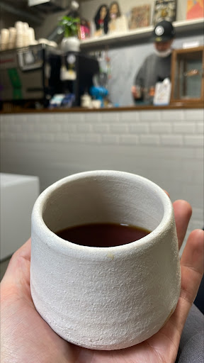 They use a variety of coffee beans from different roasters around Tokyo, currently they are using (2022 March) Seven Years coffee, as well as beans from All Seasons. The cups and plates are also made made locally in Tokyo!