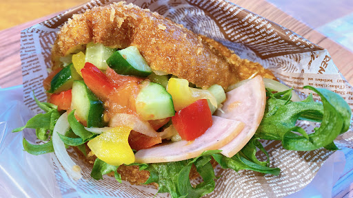 サラダカレーパン、ものすっごく美味しくてビックリしました。とてもとても美味しい〜!!! サラダにかかっているドレッシングがカレーと合うのですごくお勧めです。 この辺のパン屋さんでは断トツ美味しいで、家族にも食べさせたくて色々と買って行きました。