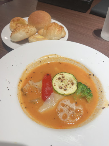 Read moreパンが目当てだったので、パン食べ放題とドリンクバーをオーダー。ところがこのパンが今一つで・・・味自体は悪くないのですが、冷めていて固くなってしまっているパンが多くて。たまーに焼きたてのパンが出されるんだけど、焼きたての割には全然熱々でもなく、少し暖かいという程度なのでがっかり。せめて温め用のオーブントースターとかが置いてあればまだいいんだけど、それもなし。ベーカリーレストランをうたっているくらいなのだから、当然パンが売りなのではないのか?その肝心のパンがこんな感じなのはちょっといただけないな。