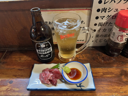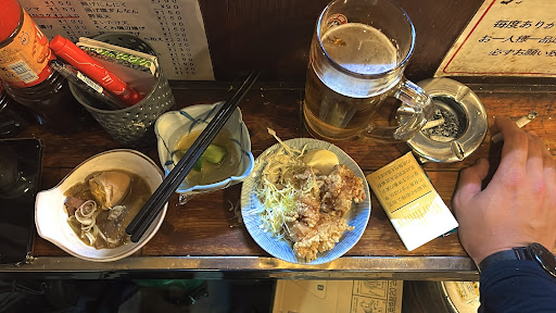 One of the typical and most popular "SENBERO" places in Tokyo! SENBERO means you can get fed and drunk with 1,000 Yen and here foods are very cheap but in relatively good quality. Ground floor is for standing and drinking style, 2nd floor has tables. ...