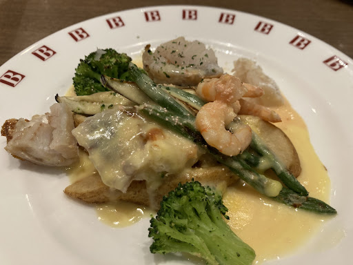 The food was good. It could have been great but it think I saw a super tiny small on an egg I got. The fondue was awesome, and the chicken was great. The all you can eat bread is always amazing. I think it is funny how they ring the bell to let all of the diners know the freshest baked bread is ready. The staff is always accomodating and friendly. There is a reason a gave then a four and why they are always packed for...