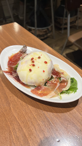 • アムスメロンが中に入った 自家製ブラータチーズと生ハム 1,628 円(税込) • 5種のピンチョス盛り合わせ 2人前 1,738 円(税込) • 天使の海老の生アヒージョ 1,408 円(税込) • 蝦夷鹿のレアカツ 1,738 円(税込) • 黒いボロネーゼ 1,518 円(税込) • グラス カヴァ 748 円(税込)✖︎2 • グラス ロゼ 792 円(税込) • サングリア 638 円(税込) • 赤ワイン クエバジャナ 902 円(税込) • 白ワイン セルメーニョブランコ 792 円(税込) • 白ワイン エルミタ ベラクルス 902 円(税込)✖︎2