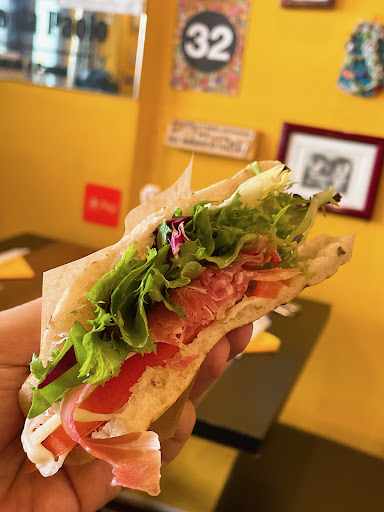 こちらはパニーニが押しと言うことで、生ハム入りのパニーニMサイズを注文。 ピザ生地を使ってるとのことで、割りともっちり系を期待していたんですが、、意外と薄いカチカチ(パリパリとも言うのかな)でドトールのパニーニの方が食べごたえはあるかな。。 そして、何だろう。。味がなんか抜けている感じ。 塩気かな。生ハムがしっかり入ってる辺りはちょうど良いが食べ始めはなんか。。 おまけにあまり温かくはなかったです。 期待が大き過ぎたかな笑。
