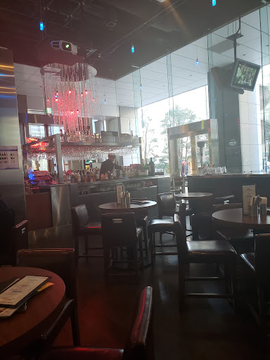 Convivial destination with floor-to-ceiling windows offering ales & global snacks.