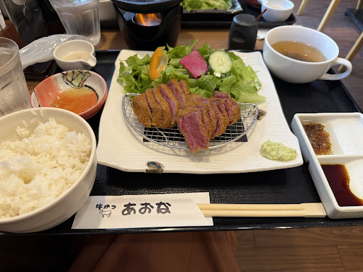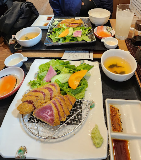 Read moreMy husband and I were looking for a Gyukatsu place close to our hotel in Ueno. We stumbled upon this restaurant for lunch time and are already planning to come back before our Tokyo trip is over. The sets are priced according to the type of meat (imported, Japanese, and Japanese Marbled) and how many grams (50g, 100g, 150g, 200g). I got the 2x kinds mixed beef Gyukatsu set (imported 50g, Japanese 50g) while hubs got the 3x kinds mixed beef Gyukatsu set (imported 50g, Japanese 50g, Japanese Marbled 50g). I highly recommend the 3x kinds set as the marbled meat is worth it. We will probably go for 200g of the Japanese marbled beef on our next visit lol. The meat was so delicious and served with 3 types of sauces, rock salt, and wasabi. You get your choice of rice (white or a grain blend), miso soup, and salad. Service was fast and pleasant. English...