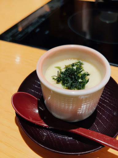 【先付け】 ・穴子とコンソメの茶碗蒸し さくらのソース 穴子が美味しい(((o(゚▽゚)o))) 美味しい茶碗蒸しでした✨