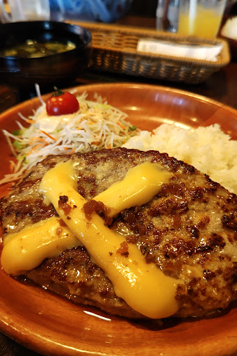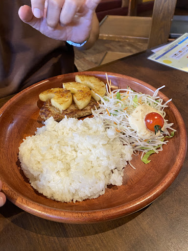 They serve different kind of dishes here you can choose from burger steak … it’s really so tasty, tender and juicy with side dish mush potato and veggies. We also ordered bibimbap also so delicious 🤤. They have also soft cream for ¥100 only! I was surprised coz it was so creamy and in vanilla flavor that you want to order again hahaha 😊 The restaurant is also big and unique style too and comfy. You don’t need to wait longer in the entrance they have automatic machine where you can reserve a seat. They also have tablet on table where you can order and see...