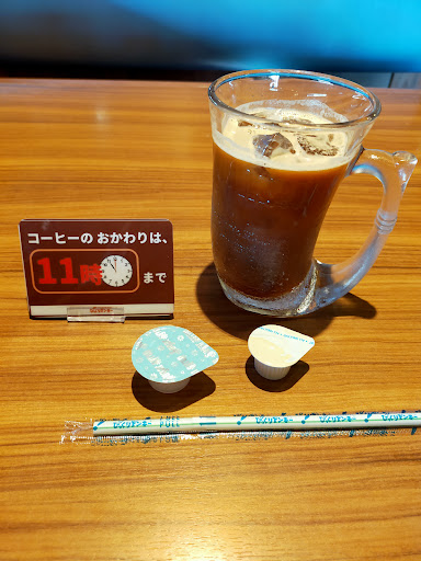 という事で、迷わず卵かけご飯セットを注文。 11時までならホットコーヒーとアイスコーヒーが、おかわり自由なのだそうです。 (コーラ、ジュースなどのソフトドリンクは、おかわり自由ではありません)