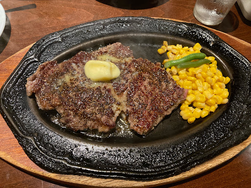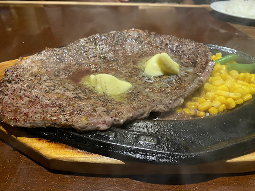Read moreザ肉!が食べたくて初来店!イメージしていた通りのザ・肉が出てきました!人数分の400gと200gを注文。キッズメニューはなかったので、キッズにも一人前200gを。コショウ?のかかった肉があつあつの鉄板の上に焼かれながら出てきました。400gは鉄板からはみ出し気味で、それだけでも大興奮!何もつけずそのままでも塩コショウの味がついていてgoodでした!少し飽きたら、さらに追い塩コショウとか、すりおろしニンニクを乗せたり、醤油をウッスラかけてみたりして食べました。テーブルになんでもあって素晴らしい!オススメはおろしニンニク!いやー、良いですね!焼き加減もちょうどよく、安い肉にある、筋張って切れにくい、噛み切れないという訳でもなく、本当に切れやすいし、油っこいなー、って言う感じでも、赤身で、脂身ないなーって言う感じでもなく全てが良い塩梅で、一気にファンになりました。7才boyは1人前ぺろり。8才小食girlは1/3ぐらい残しましたが(すごく食べた方です)親が残りをペロリ。みんな大満足でした!また行きたい!駐車場はなかったが、周りにたくさんあったので不便はなかったです。近隣の駐車場で夜20時ぐらいに停めて食べ終わるまで...