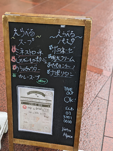 ランチメニューは、スープとパンのセットが550円、スープとパスタのセットが770円。スープは4種類、パスタも4種類から選択可能でした。スープはクラムチャウダーを、パスタは菜の花とベーコンのペペロンチーノを選択しました。