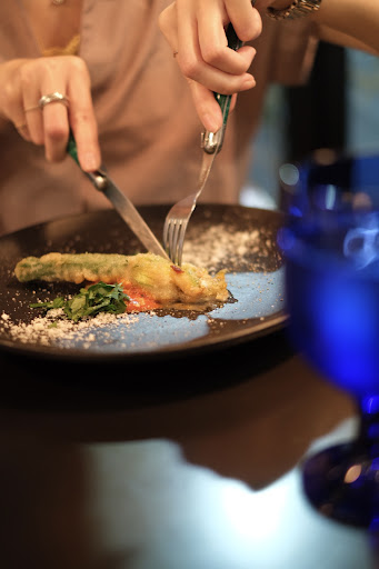 ズッキーニの茎の部分の食感のシャキッとした素晴らしさが印象的な逸品。