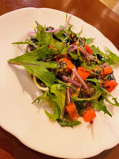 最初に出てきたレバームースがとにかく好みのお味!間髪入れずにディップ用のバケットを注文。 どのお料理も美味でしたが、特にお肉料理の焼き加減が丁度良く、私は鴨肉、主人はミルク牛に感動しました。
