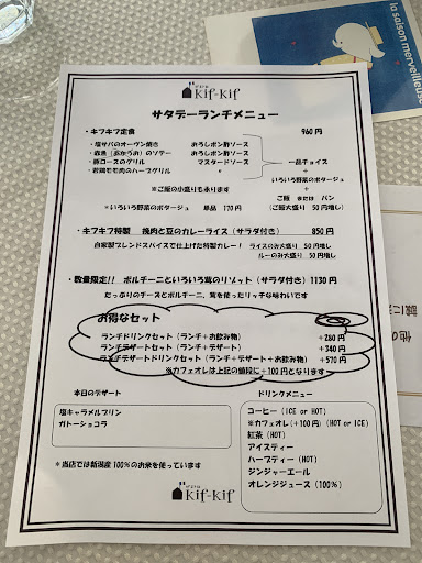 三人でキフキフに行くも、満席だったため店の外で待つことに。二組ほど退店したが、いつまで経っても呼びに来ないので、店内へ。お二人様ですかと二人席に案内されそうになったが、三人座れるように椅子を用意してくれたのは、店側である。