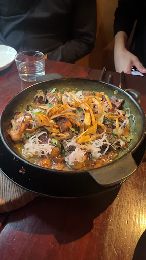 The first dish was a squid appetizer, then a carpaccio, mussels and mushrooms, shrimp with bisque, and finally lots of delicious pork. The amount seems small at first but by the end you’re pleasantly stuffed.